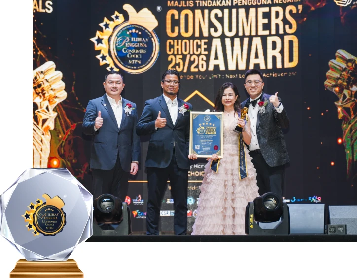 YOU ME CO SDN BHD 荣获由马来西亚国家消费者行动理事会(MTPN)颁发的“消费者首选奖”,此殊荣肯定了我们在卓越品质、诚信经营以及消费者满意度方面的坚持与表现。